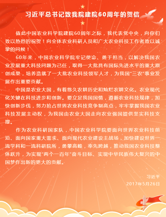 習(xí)近平總書記致我院建院60周年的賀信