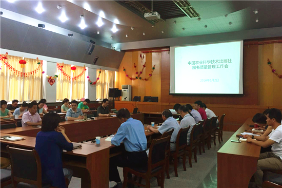6月2日,中國農(nóng)業(yè)科學(xué)技術(shù)出版社召開了以“打造精品力作,提升文化產(chǎn)品正能量”為主題的圖書質(zhì)量管理工作會,針對進(jìn)一步加強(qiáng)圖書質(zhì)量管理進(jìn)行了交流和研討。社領(lǐng)導(dǎo)、相關(guān)職能部門人員、全體編校人員、終審和印前審讀專家等參加了會議。會議由社長駱建忠主持。